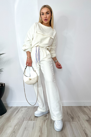 Eine phänomenale Jogginghose mit weitem Bein, die Ihre Herzen im Sturm erobern wird! Das cremefarbene Sweatshirt von IRELIA und das rosafarbene T-Shirt sind die perfekte Ergänzung zu diesen Trainingsanzügen. Ein perfektes Set für Frühlingsspaziergänge. Der heißeste Trend der Saison. Ein absolutes Muss in Ihrem Kleiderschrank!